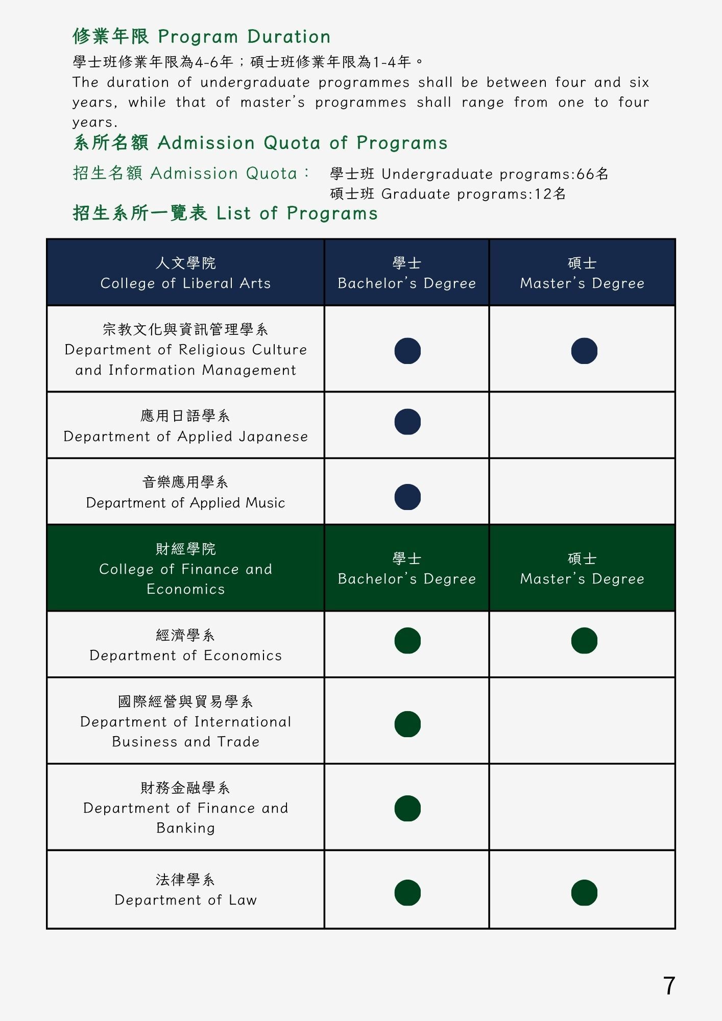 系所名額 Admission Quota of Programs
