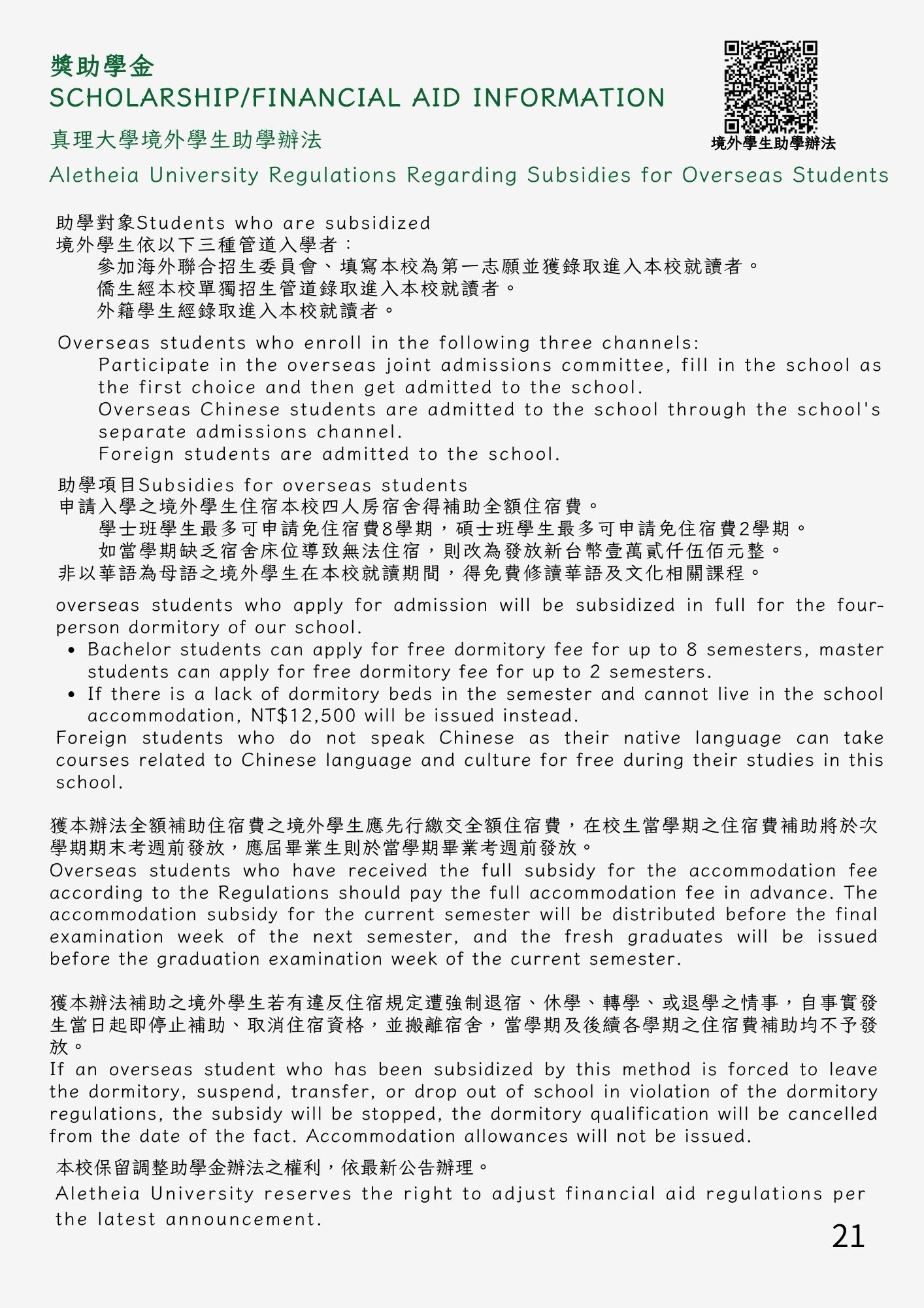 獎助學金Scholarship/Financial Aid Information